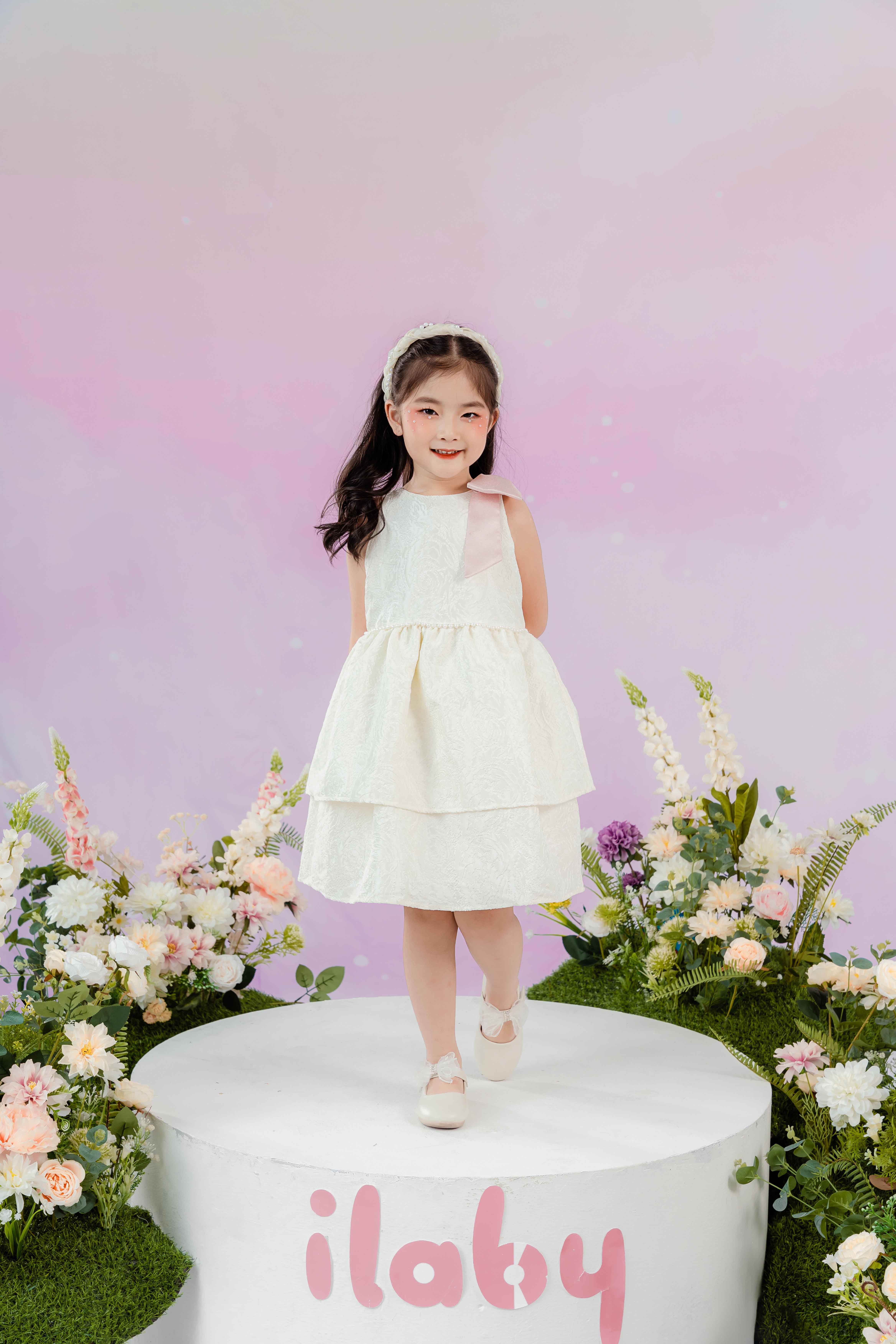 Váy tafta hai tầng phối nơ vai